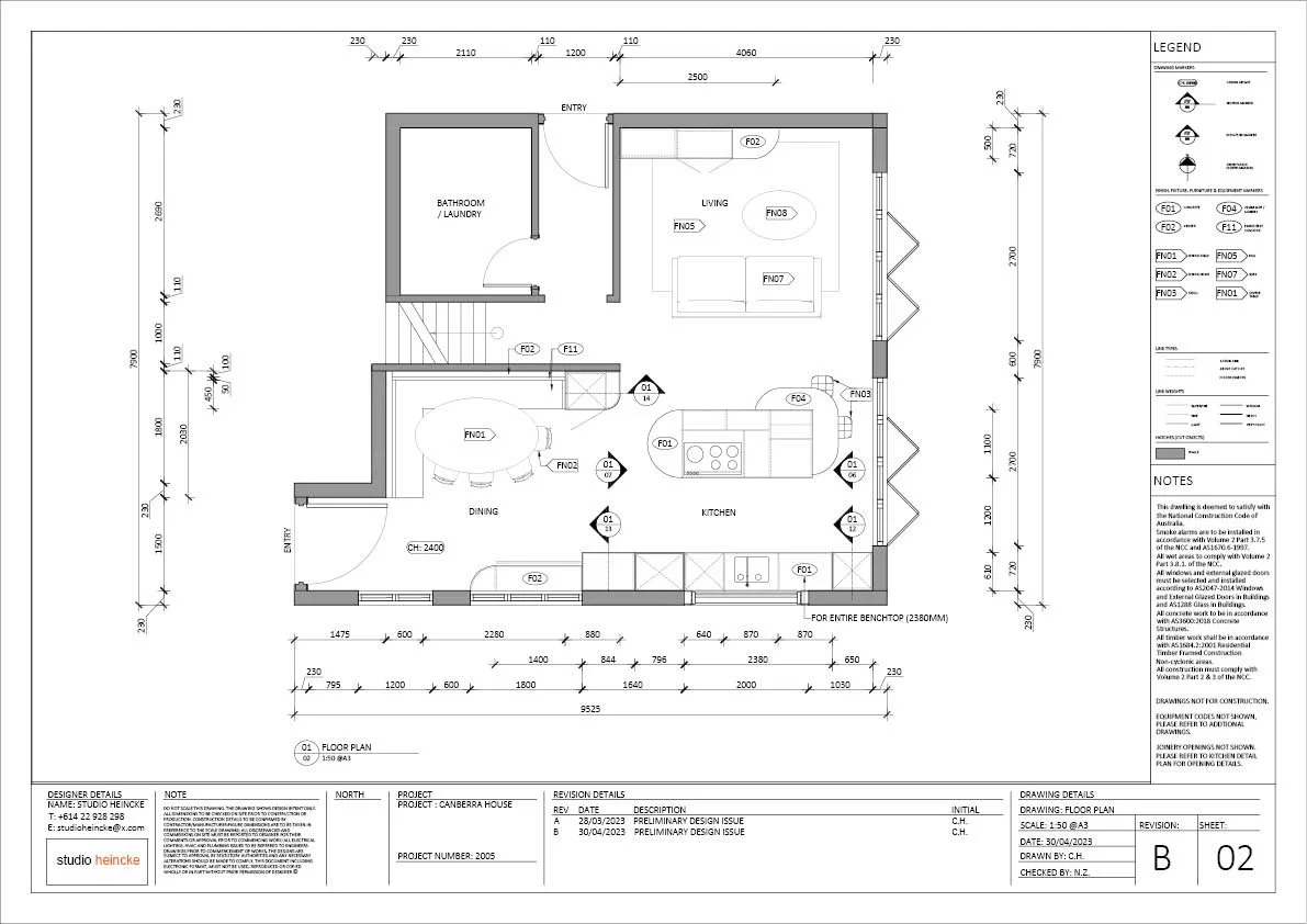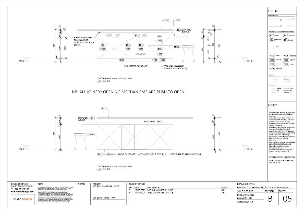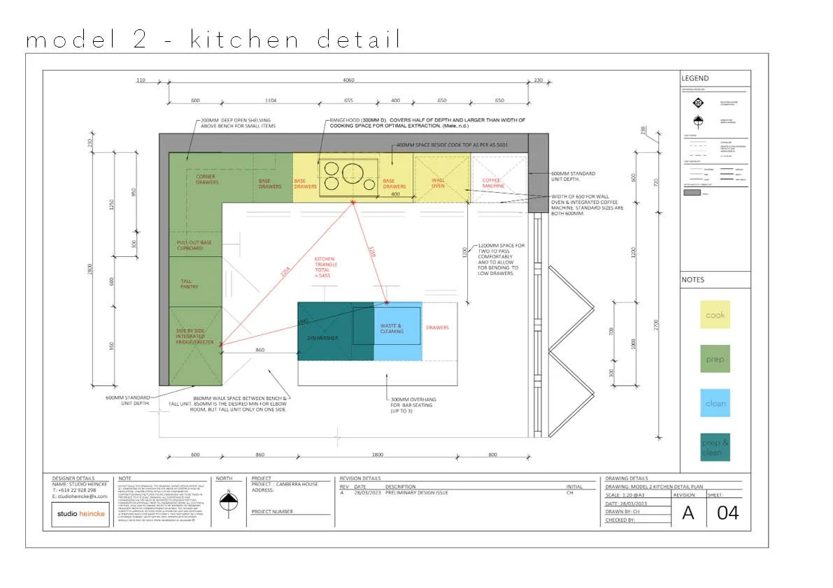 A key focus was the kitchen, designed with strict adherence to Australian Standards, NCC Regulations and ergonomic principles such as the working triangle. Extensive research ensured maximum functionality, while spatial planning incorporated SketchUp block diagrams and movement pattern analysis to optimize flow. Consideration of shifting natural light informed the placement of finishes and materials, enhancing the home’s warmth and livability throughout the day.