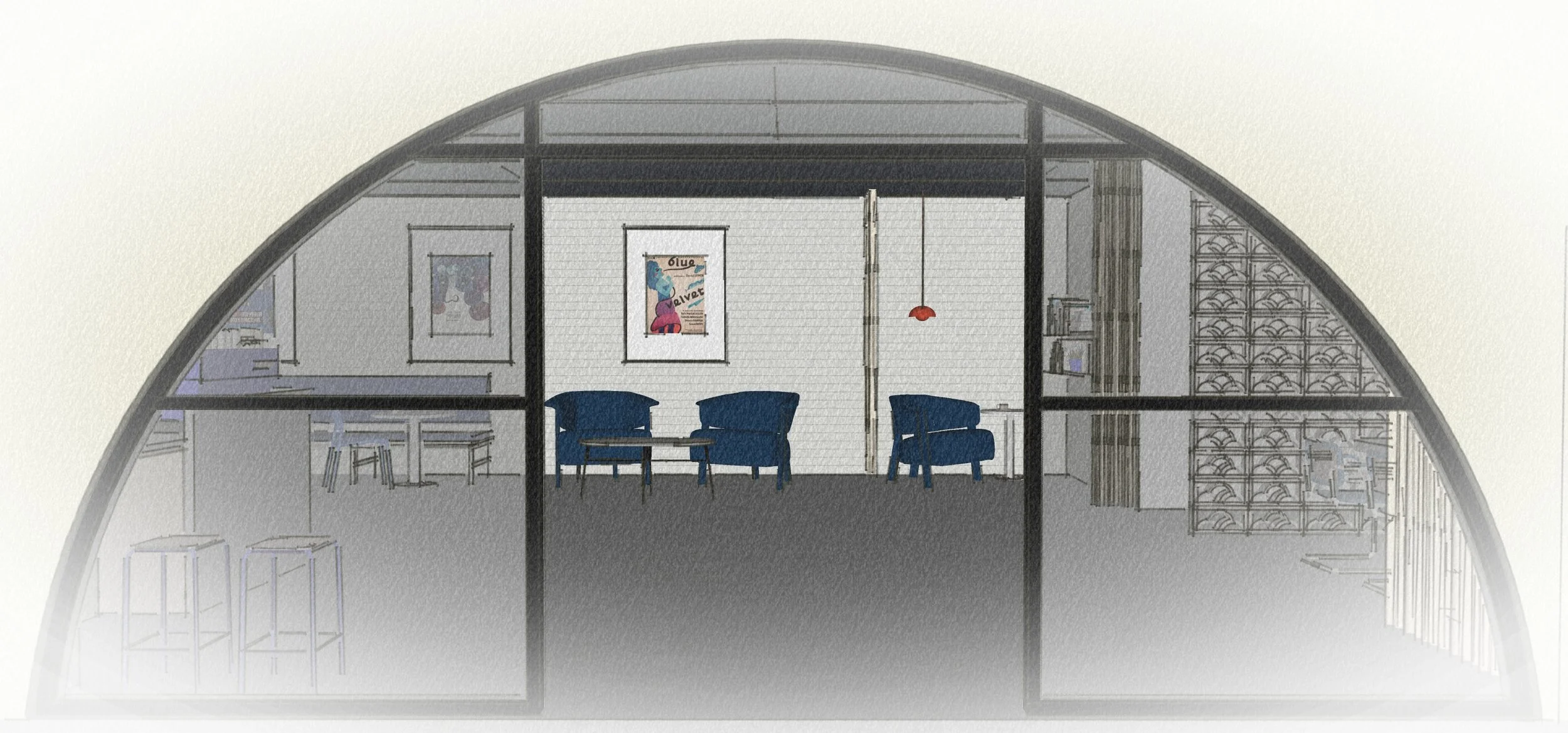 The renders intentionally embrace a sketch-like aesthetic, shifting away from photorealism to offer a more conceptual and expressive style of presentation. This approach highlights the design’s essence—materials, form, and atmosphere—while allowing room for interpretation and imagination.