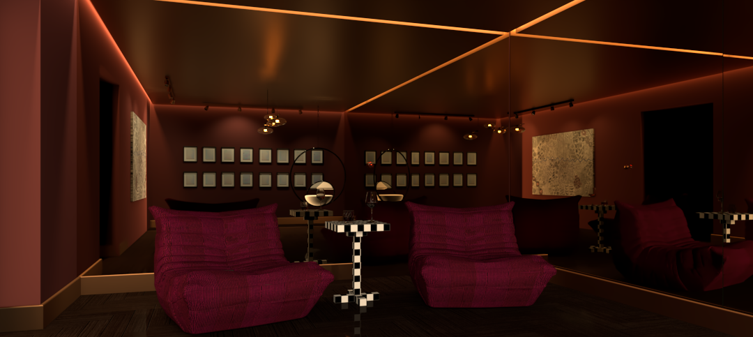 The absence of natural light presented significant rendering challenges, necessitating advanced proficiency in SketchUp and Vray. Capturing the nuanced interplay of light on mirrored surfaces demanded extra precision, and I am very proud of how the final renders authentically convey the design’s atmosphere.